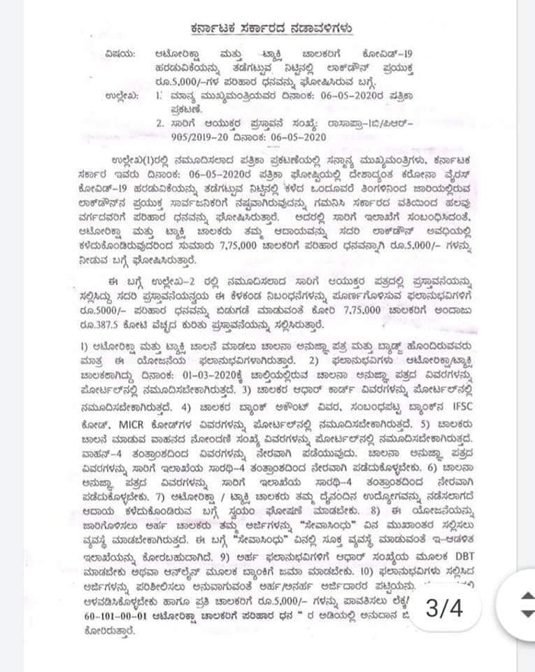 ಕೊರೊನಾ ಹಿನ್ನೆಲೆಯಲ್ಲಿ ಆಟೋ ಮತ್ತು ಟ್ಯಾಕ್ಸಿ ಚಾಲಕರಿಗೆ ಪ್ಯಾಕೇಜ್ ಘೋಷಿಸಬೇಕೆಂಬ ಒತ್ತಾಯ ಕೇಳಿಬರುತ್ತಿತ್ತು. ಇದಕ್ಕಾಗಿ ಹಲವು ಸಂಘಟನೆಗಳು ಸರ್ಕಾರವನ್ನು ಒತ್ತಾಯಿಸಿದ್ದವು.