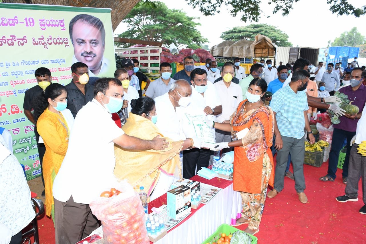 ಸೋಮವಾರ ಕ್ಷೇತ್ರದ ಜನರಿಗೆ ಮನೆ ಮನೆಗೆ ಆಹಾರ ಕಿಟ್ ವಿತರಣೆ ಕಾರ್ಯಕ್ರಮದಲ್ಲಿ ಮಾತನಾಡಿದರು. ಮಾಜಿ ಪ್ರಧಾನಿ ಎಚ್.ಡಿ.ದೇವೇಗೌಡರು ಇದ್ದರು.