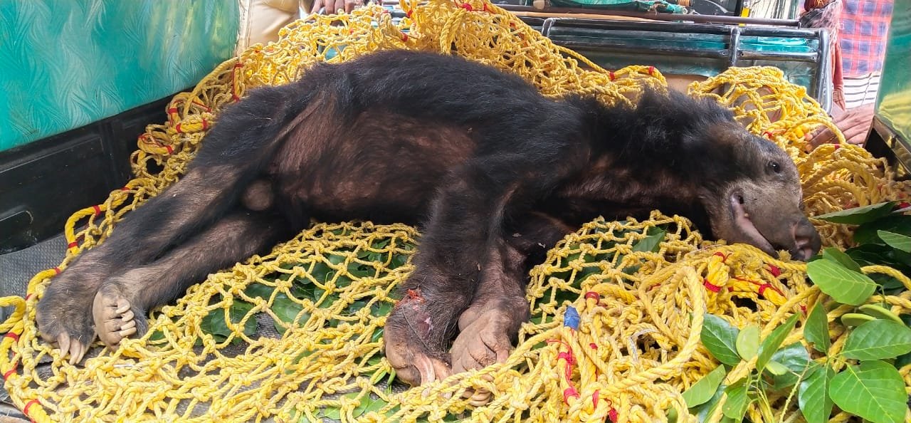 ಕಳ್ಳ ಬೇಟಿಯ ಉರುಳಿಗೆ ಬಿದ್ದು ನರಳಾಡುತ್ತಿದ್ದ ಈ ಗಂಡು ಕರಡಿಗೆ ಏನೇನು ಮಾಡಿದರೂ ಚಿಕಿತ್ಸೆ ಫಲಕಾರಿಯಾಗದೇ ಮೃತಪಟ್ಟಿತು.