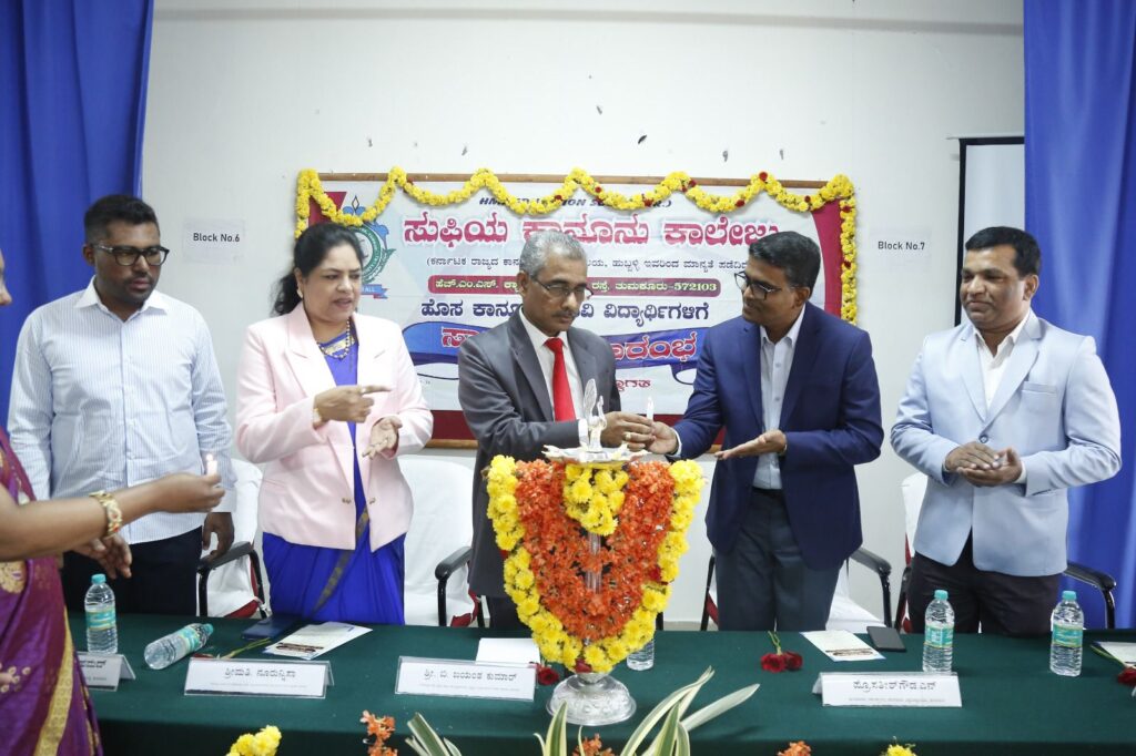 ತುಮಕೂರಿನ ಸುಫಿಯಾ ಕಾನೂನು ಕಾಲೇಜಿನಲ್ಲಿ ಮೊದಲ ವರ್ಷದ ಕಾನೂನು ವಿದ್ಯಾರ್ಥಿಗಳನ್ನು ಕುರಿತು ಮಾತನಾಡಿದರು.