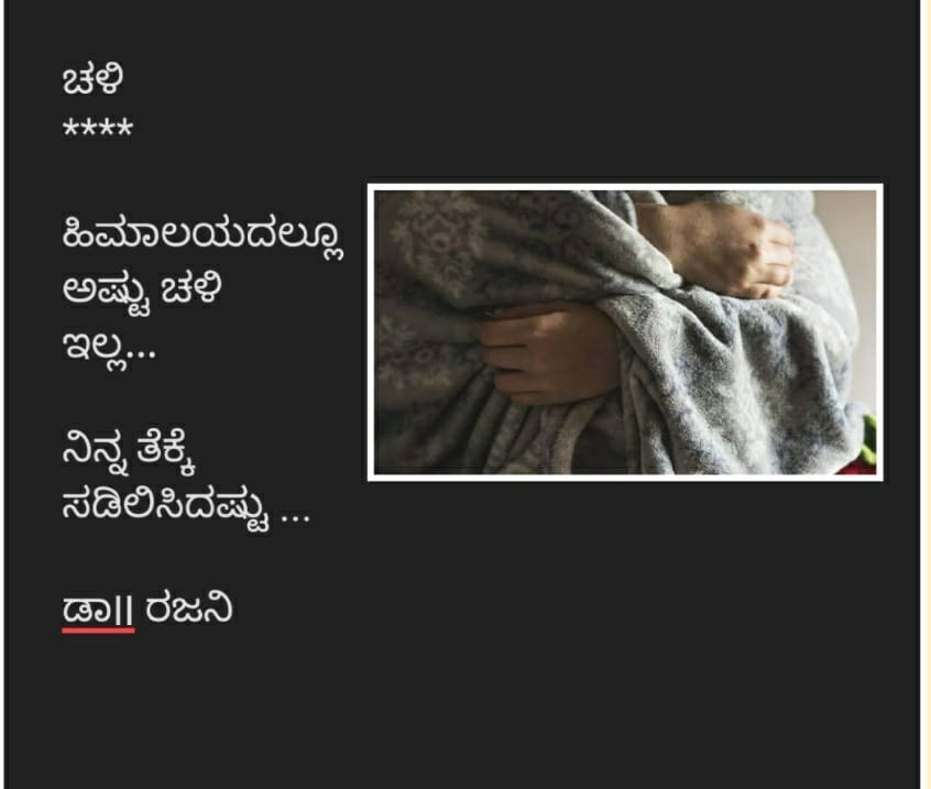 Homeಸಾಹಿತ್ಯ ಸಂವಾದಕವನಗಝಲ್ : ಚಿತ್ರ - ಚಿತ್ತಕವನಗಝಲ್ : ಚಿತ್ರ – ಚಿತ್ತBy adminOctober 31, 20210113ShareFacebookTwitterPinterestWhatsApp ShareFacebookTwitterPinterestWhatsApp Previous articleಚಿತ್ರ-ಚಿತ್ತ: ರಜನಿ ಕವನಗಳುNext articleಅಪ್ಪುadminRELATED ARTICLES ಕವನಗಾಳಿಪಟ January 14, 2025 ಕವನಚುಟುಕುಗಳು May 22, 2024 ಕವನಅಮ್ಮ : ತಾಯಂದಿರದಿನದ ಕವನ May 14, 2023 LEAVE A REPLY Cancel replyComment:Please enter your comment! Name:*Please enter your name here Email:*You have entered an incorrect email address!Please enter your email address here Website: Save my name, email, and website in this browser for the next time I comment. Δ- Advertisment -Most Popularಎಸ್ ಐ ಆರ್ ಮೂಲಕಹಿಂಬಾಗಿಲಿಂದ ಮತಾಧಿಕಾರ ನಿರಾಕರಣೆಯ ಯತ್ನ ; ಕಾಂ.ಪ್ರಕಾಶ್ October 19, 2025 ತುಮಕೂರು ಜಿಲ್ಲೆಯ ಆಶಾಕಿರಣ October 11, 2025 ಯುವ ವಕೀಲರಲ್ಲಿ ಶಿಸ್ತು, ಅಧ್ಯಯನದ ಕೊರತೆ: ನ್ಯಾಯಾದೀಶ ಜಯಂತ್ ಕುಮಾರ್ September 24, 2025 ಬೆಂಗಳೂರು ರಿಂಗ್ ರಸ್ತೆ ಭೂ ಸ್ವಾಧೀನ ಕೈಬಿಡಲು ಸಿದ್ದಗಂಗಾ ಶ್ರೀ ಒತ್ತಾಯ August 23, 2025 Load moreRecent Comments ಇನ್ಸ್ಪೆಕ್ಟರ್ ಸಲ್ಮಾನ್ ಕೆ ಎನ್ on ಕ್ರೀಡಾಕೂಟ ಝಲಕ್ Suresh on ಓದಲೇಬೇಕಾದ ಕವಿತೆಗಳು: ಬುದ್ಧ ಕನ್ನಡಕ್ಕಾಗಿ ಜೈಲು ಸೇರಿದ ಕೃಷ್ಣ – Public Story on ಬಹುಮುಖ ವ್ಯಕ್ತಿತ್ವದ ವೂಡೇ ಪಿ.ಕೃಷ್ಣ ಬಹುಮುಖ ವ್ಯಕ್ತಿತ್ವದ ವೂಡೇ ಪಿ.ಕೃಷ್ಣ – Public Story on ಬಹುಮುಖ ವ್ಯಕ್ತಿತ್ವದ ವೂಡೇ ಪಿ.ಕೃಷ್ಣ ವೂಡೇ ಮನೆತನ – ಭಾಗ ೨ – Public Story on ಬಹುಮುಖ ವ್ಯಕ್ತಿತ್ವದ ವೂಡೇ ಪಿ.ಕೃಷ್ಣ Shivaraju KP on ಮತ ಹಾಕುವ ಮುನ್ನ ಈ ಹಸಿವಿನ ಕಥನ ಓದಿ Umesh on ಮತ ಹಾಕುವ ಮುನ್ನ ಈ ಹಸಿವಿನ ಕಥನ ಓದಿ prasanna on ಮತ ಹಾಕುವ ಮುನ್ನ ಈ ಹಸಿವಿನ ಕಥನ ಓದಿ B S Ranganath on ಈ ಸಂಖ್ಯೆ ಇದ್ದ ಹಣ್ಣು ತಿನ್ನಲೇಬಾರದು ಏಕೆ ಗೊತ್ತಾ? Dr rashmi on ಮತ್ತೆ ಬಂದ ವಸಂತ B N NAGESH on ಬೊಬ್ಬೆ ಬಂದರೂ ಬಿಡದ ವಕೀಲರ ಪಾದಯಾತ್ರೆ Dr. B L Mukundappa on ತುಮಕೂರು ವಿ.ವಿ.ಯಲ್ಲೊಬ್ಬರು ಅಪರೂಪದ ಗುರುವರ್ಯ slash on ಪ್ರೊ.ಪರುಷರಾಮ್ ತುಮಕೂರಿನ ಆಸ್ತಿ Kusum prasad T.L on ಕವನ ಓದಿ: ಹೂವು Anithalakshmi. K. L on ಕವನ ಓದಿ: ಹೂವು imranpasha on ಬಾಬಯ್ಯನ ಪಾಳ್ಯ ಹಿಂದೂ ಮುಸ್ಲಿಮ್ ಭಾವೈಕ್ಯತೆಯ ಸೌಂದರ್ಯ Dhananjaya S/o Rangaiah on ತುರುವೇಕೆರೆಯಲ್ಲಿ ರೆಡ್ ಅಲರ್ಟ್ ಘೋಷಣೆ: ಜಿಲ್ಲಾಧಿಕಾರಿ Sukanya on ಗುರು Padmini on ಇವರೇ ನಮ್ಮ ಡಾಕ್ಟ್ರು; : ದೇವರೇ ಬಂದ್ರೂ ರಜನಿ ಡಾಕ್ಟರೇ ಹೇಳ್ ಬೇಕು! imranpasha on ತುಮಕೂರು ನದಿಗಳ ಪುನರುಜ್ಜೀವನದ ಬಗ್ಗೆ ಮೌನ ಏಕೆ? Varadaraju K on ಕದ್ದುಮುಚ್ಚಿ ಮದುವೆ ತಡೆದ ಅಧಿಕಾರಿಗಳ ತಂಡ Chikkanna SD on ಮಳೆ: ಬಿದ್ದ ಮರ, ಸಿಡಿಲಿಗೆ 5 ಮೇಕೆ ಸಾವು Jayashri on ಪತ್ರಕರ್ತ ಚಿದುಗೆ ವೈ.ಕೆ.ರಾಮಯ್ಯ ಪ್ರಶಸ್ತಿ Sukanya on ಕೊಳಲ ಕರೆ Sukanya on ಕೊಳಲ ಕರೆ ಚಾ ಶಿ ಜಯಕುಮಾರ್ ಕೃಷ್ಣರಾಜಪೇಟೆ.ಮಂಡ್ಯ ಜಿಲ್ಲೆ. on ಮಂಡ್ಯ: ಈ ಸರ್ಕಾರಿ ಶಾಲೆ ನೋಡಿದರೆ ಎಂಥವರೂ ಮೂಕವಿಸ್ಮಿತರಾಗುತ್ತಾರೆ… Dr rashmi on ಕವನ ಓದಿ: ಚೆರ್ರಿ ಹೂವಿನ ಪ್ರೇಮ… Anithalakshmi. K. L on ಕವಿತೆಗೂ ಒಂದು ದಿನ Dr kalpana viswanath on ಕವಿತೆ ಓದಿ: ಯುದ್ಧ Padmini on ಯುವ ಜನತೆ ದಿನ: ಕವಿತೆ ಓದಿ- ಯೌವನ Dr rashmi on ಡಾ. ರಜನಿ ಕಣ್ಣಲ್ಲಿ ಕಲೀಲ್ ಗಿಬ್ರಾನ್ ಕವಿತೆ ಚಾ ಶಿ ಜಯಕುಮಾರ್ ಕೃಷ್ಣರಾಜಪೇಟೆ.ಮಂಡ್ಯ ಜಿಲ್ಲೆ. on ಮಂಡ್ಯ: ಈ ಸರ್ಕಾರಿ ಶಾಲೆ ನೋಡಿದರೆ ಎಂಥವರೂ ಮೂಕವಿಸ್ಮಿತರಾಗುತ್ತಾರೆ… Triveni on ಡಾ. ರಜನಿ ಕವಿತೆ: ಹೊಸ ವರುಷ Mahalakshmi MH on ಡಾ. ರಜನಿ ಕವಿತೆ: ಹೊಸ ವರುಷ Sharmith on ಮಳೆಗೆ ನಲುಗಿದ ತುರುವೇಕೆರೆ: ಲಕ್ಷಾಂತರ ರೂಪಾಯಿ ನಷ್ಟ, ಮನೆಗಳಿಗೆ ಹಾನಿ Sukanya on ನವರಾತ್ರಿ ಕವನ :ಕೆಂಪು Dr Bhagyashree on ಭಾನುವಾರದ ಕವಿತೆ: ಬೆಟ್ಟ ಜಾರಿ Radhika kudur on ಭಾನುವಾರದ ಕವಿತೆ: ಸುಂಯ್ ಗಾಳಿ G k kulkarni on ಭಾನುವಾರದ ಕವಿತೆ: ಸುಂಯ್ ಗಾಳಿ Dr Bhagyashree on ಭಾನುವಾರದ ಕವಿತೆ: ಸುಂಯ್ ಗಾಳಿ MOHAMED IBRAHIM EHTESHAM on ಎಸ್. ರಮೇಶ್ ಗೆ ಕಾನೂನು ವಿ