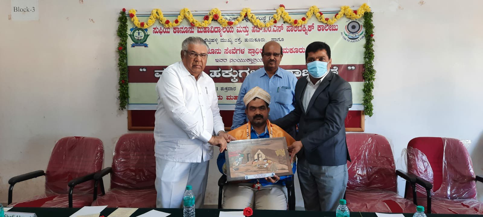 ಸುಫಿಯಾ ಕಾನೂನು ಮಹಾ ವಿದ್ಯಾಲಯದ ಪ್ರಾಂಶುಪಾಲ ಡಾ.ಎಸ್. ರಮೇಶ, ಉಪ ಪ್ರಾಂಶುಪಾಲ ಓಬಯ್ಯ, ಉಪನ್ಯಾಸಕರಾದ ಸಿ.ಕೆ.ಮಹೇಂದ್ರ, ಮಂಜುನಾಥ್, ಶ್ರೀನಿವಾಸ್ ಉಪಸ್ಥಿತರಿದ್ದರು.
