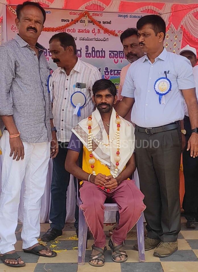 ತಾಲ್ಲೂಕು ಕ್ರೀಡಾಂಗಣದ ಕೇರ್ ಟೇಕರ್ ಹಾಗೂ ಮಾರ್ಕರ್ ರಮೇಶ್‘ರವರನ್ನು ತಾಲ್ಲೂಕು ಮಟ್ಟದ ಪ್ರಾಥಮಿಕ ಮತ್ತು ಪ್ರೌಢಶಾಲಾ ಮಕ್ಕಳ ಕ್ರೀಡಾಕೂಟದ ಉದ್ಘಾಟನಾ ಸಮಾರಂಭದಲ್ಲಿ,